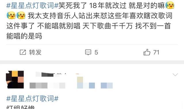 而不管是16年、18年還是22年問世的《星星點燈》,在歌詞上都對原曲進行了更改。如果原作者沒授予版權的話,確實也有合法維權的權利。