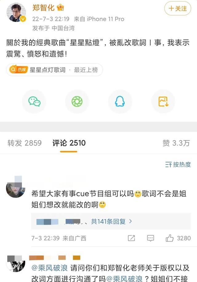 但是,看過鄭智化的發文,其實不難看出,鄭智化憤怒的始終不過是“亂改歌詞”一環。