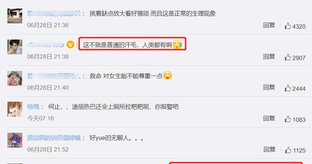 對(duì)于熱巴體毛旺盛這件事的看法,大部分網(wǎng)友的三觀還是很正的,大家普遍覺得,就算是娛樂圈美女明星,有體毛也很正常。