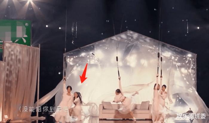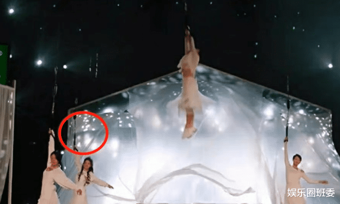 這個舞臺上有很多動作需要在高空完成。雖然明星們掛威亞的次數(shù)并不少,但就像這次表演一樣,沒有備用的安全設施。仍然有一些危險因素可以通過單手握住威亞手鐲來保證自己。