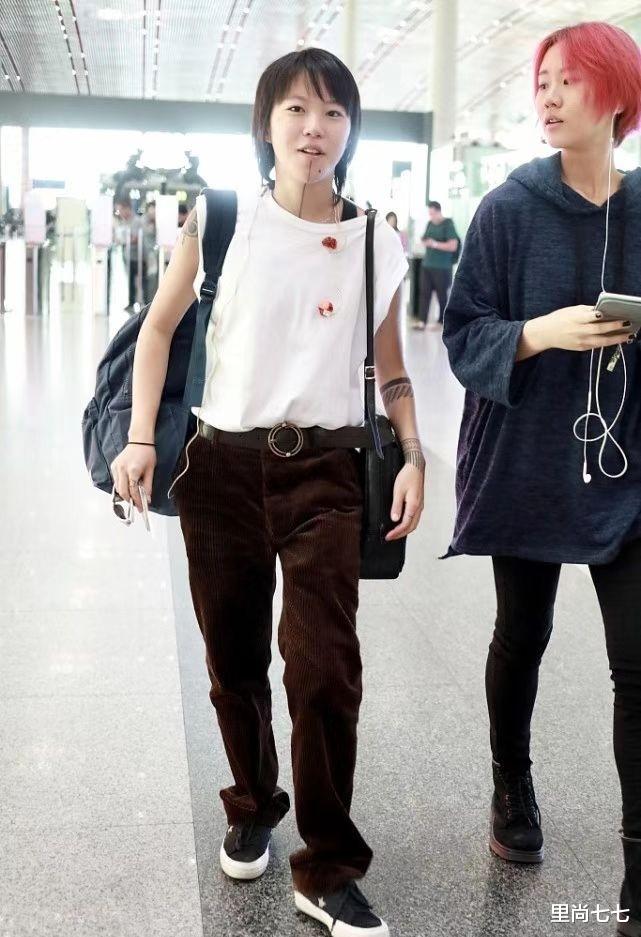 在傳統的審美理念當中,女性的風格搭配總是會運用性別上的優勢,做整體的強調。竇靖童的造型則是降低了女性性別化的色彩選擇,沒有強調曲線感的常規單品,上半身的無袖T恤設計搭配直筒的寬松褲子,有意弱化了女性的曲線效果,通過寬松的版型來呈現中性風格的基調。