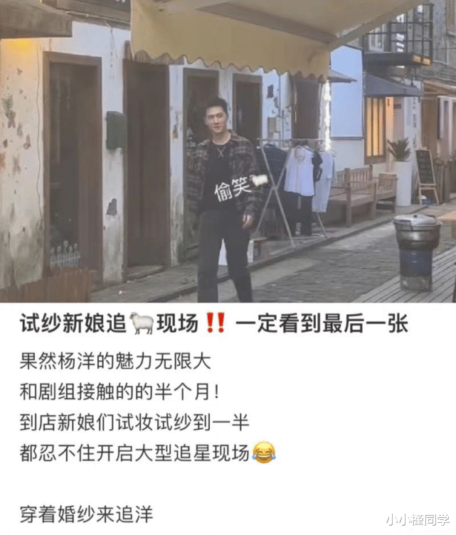 最后,也來看看,位于劇組場景地旁邊的婚紗店,放出了這大半個月來,每個來試婚紗的新娘們,一聽說楊洋在附近拍戲時的第一反應(yīng)