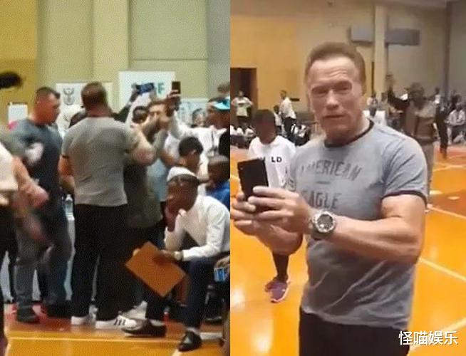就在任達(dá)華被刺之前,好萊塢巨星阿諾也遭人從背后飛踹,已經(jīng)72歲的阿諾不愧是老牌硬漢,自己只是稍微搖晃了一下,對方卻被彈飛出去。