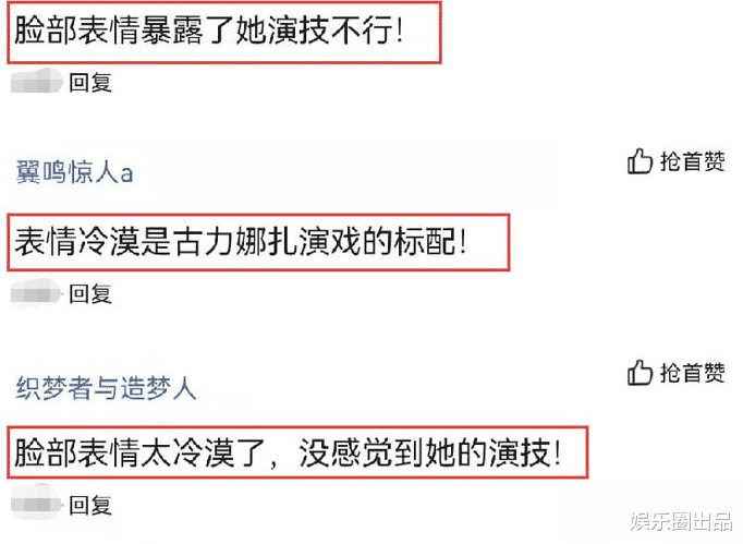 照片在火了之后,很多人都注意到了,她的臉上表情有點冷漠,帶動著演技也一同下降,在看到照片后,還有人表示,臉部表情太冷漠了,根本看不出任何的演技。這一番評論,如果被明星本人看到,估計內(nèi)心要失望了吧。
