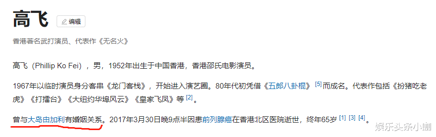 除了鄭浩南之外,大島由加利還有一段緋聞婚姻,就是和香港導演高飛。高飛也是自小習武的功夫高手,兩人曾合作過多部戲,包括《宇宙狙擊》和《轟天密令》等。后來有消息稱兩人已經結婚。
