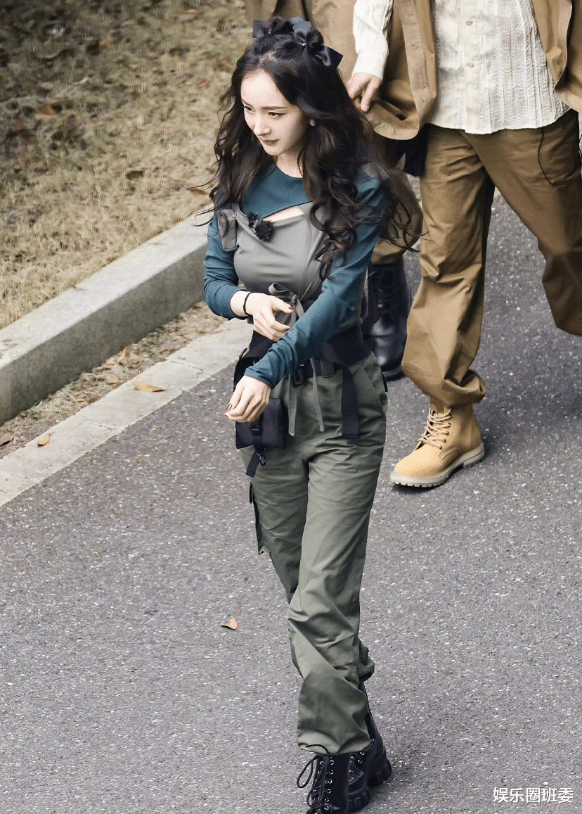 楊冪的另一套造型是一身修身的工裝服,胸口同樣采用鏤空設計,露出她白皙細膩的肌膚。楊冪披散著一頭長卷發,頭上還戴著少女風十足的蝴蝶結發卡,即便她已經35歲,是有了孩子的辣媽,但依舊美到出塵,從外觀上看與十幾歲的青春美少女無異。