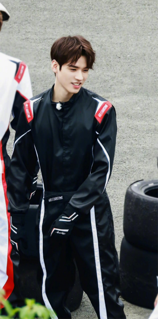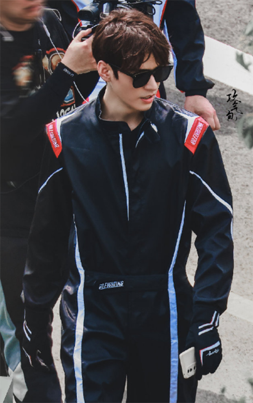 黑色賽車服搭配新發色!戴著墨鏡的高冷男神,像雕塑一樣美麗。綜藝節目錄制,龔俊身穿連體賽車服,全黑色造型搭配白色線條設計,大長腿,更顯優美的身材,帥氣蠱人,網友:點播一首極速愛情,送給在場最耀眼的大明星龔俊。