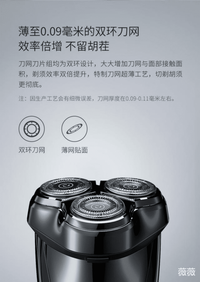 同時,這款斯恩普剃須刀的刀網和刀片也摒棄了傳統的設計,采用了雙環刀網設計,提高了刀網與刀面的接觸面積。刀網的厚度為0.09-0.11毫米,在剃須時不會留下痕跡,也剃得更加干凈。而且它內置5W超強功率,不管什么樣的胡須都能一次性剃掉,剃須效率比傳統剃須刀高兩倍!
