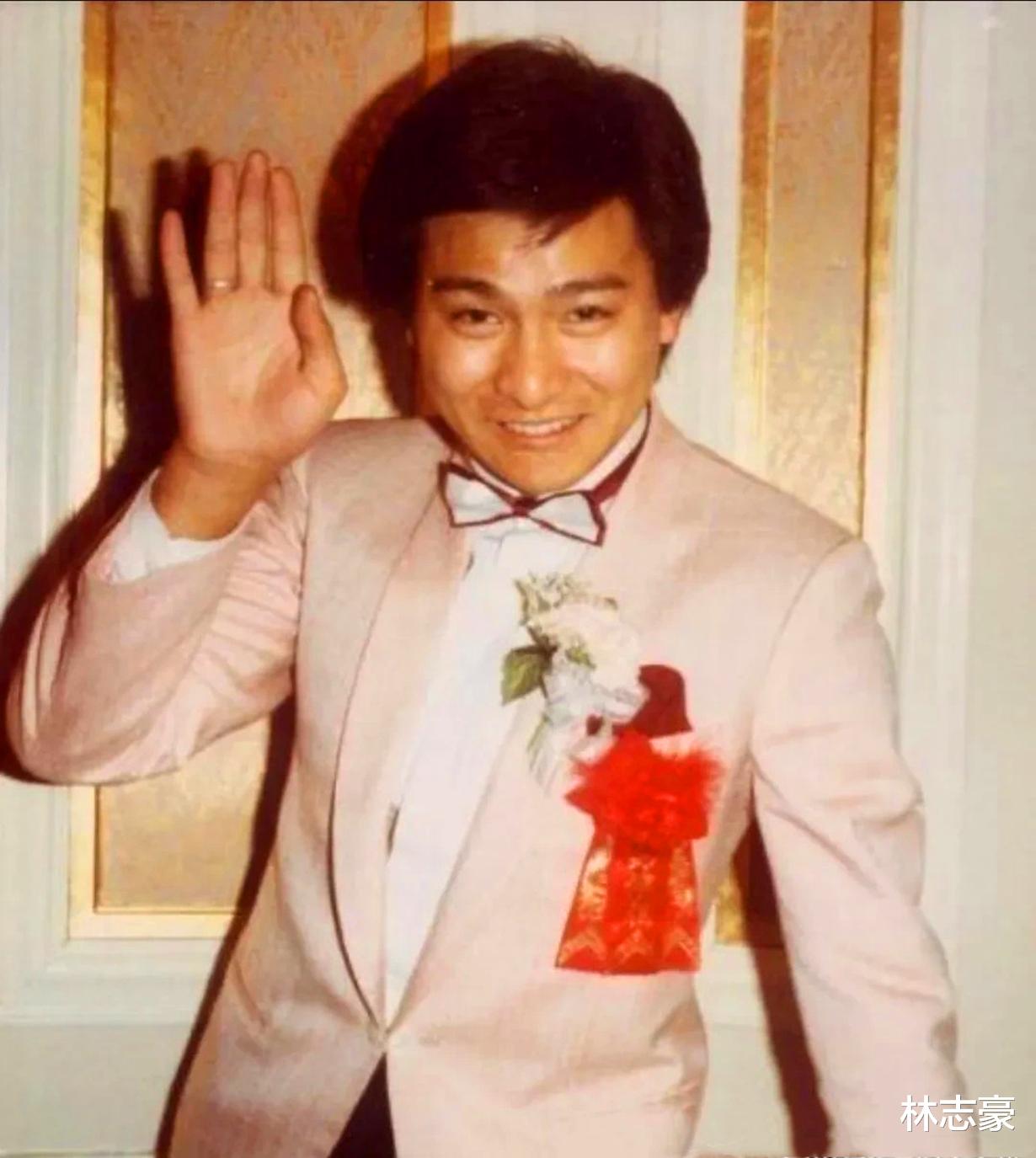 1983年12月周潤發(fā)和余安安結(jié)婚,22歲的劉德華參加婚禮做伴郎的造型。