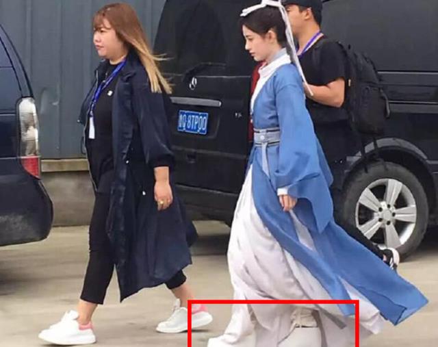 不得不說演員真是敬業,這樣子也能專心致志拍戲不受影響。因為木箱子的移動性不強,所以最后劇組也是推陳出新,用增高鞋來彌補身高的缺陷。像羅云熙、鞠婧祎、趙露思等都被拍到過穿這種鞋子。