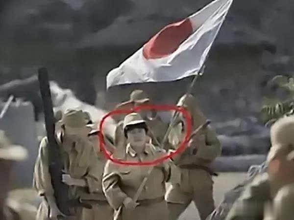 首先我們來看看國產抗日神劇,穿幫鏡頭真的非常多,上面這一幕劇組找了一堆群演來演日本鬼子,但是卻讓一個大媽來扛旗,還是C位,穿幫也太尬了,導演怕是怕觀眾看不出她是個大媽演的吧?就算找不到人也不應該這么敷衍啊,真是的!