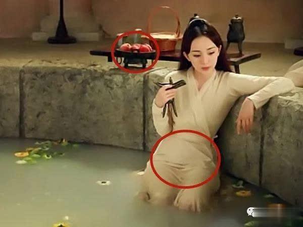 接著看一下楊冪,楊冪如今很少演戲了,蠻可惜的。畢竟她的古裝劇真的很好看,上面這一幕是楊冪在《三生三世十里桃花》的一場沐浴戲,穿著一身白衣的她泡在水上,拿著酒杯,太好看了。不過可惜穿幫卻很多,楊冪只有下半身泡在水中但卻全身濕透了,還有桌子竟然還放著啤酒。