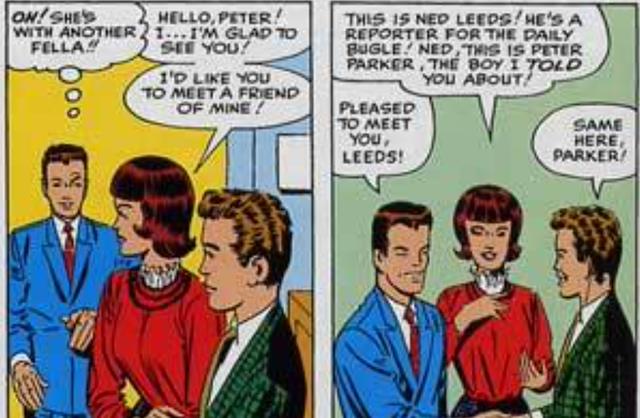 而對于另外一邊的內(nèi)德,其實在原著中并非是和彼得·帕克是同學(xué)關(guān)系,而是在號角日報工作時的同事關(guān)系,值得一提的是,當(dāng)時彼得·帕克和內(nèi)德都曾對報社內(nèi)的貝蒂這一角色產(chǎn)生過好感。