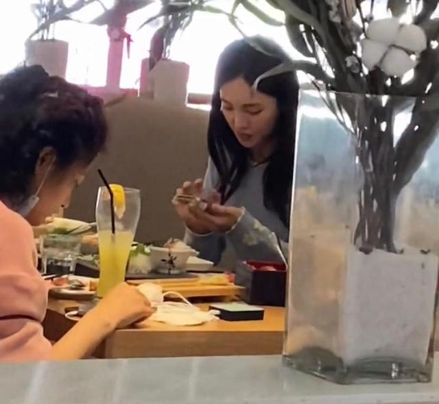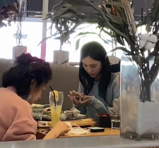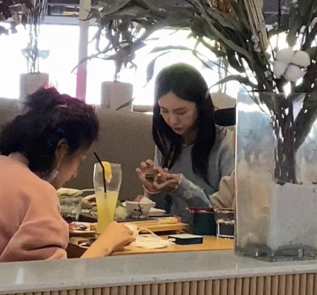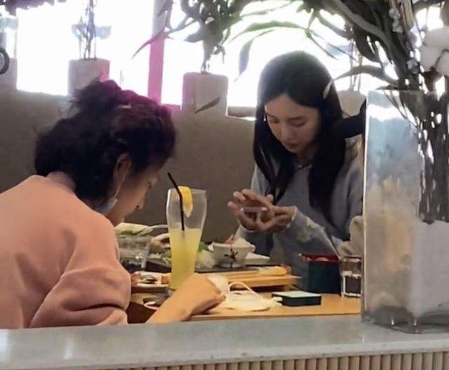 金晨的面前也擺放著一些吃過的食物,不過此與閨蜜們的聚餐,金晨似乎并未把注意力放在美食上,更多的時間里都是在低頭玩弄著手機。