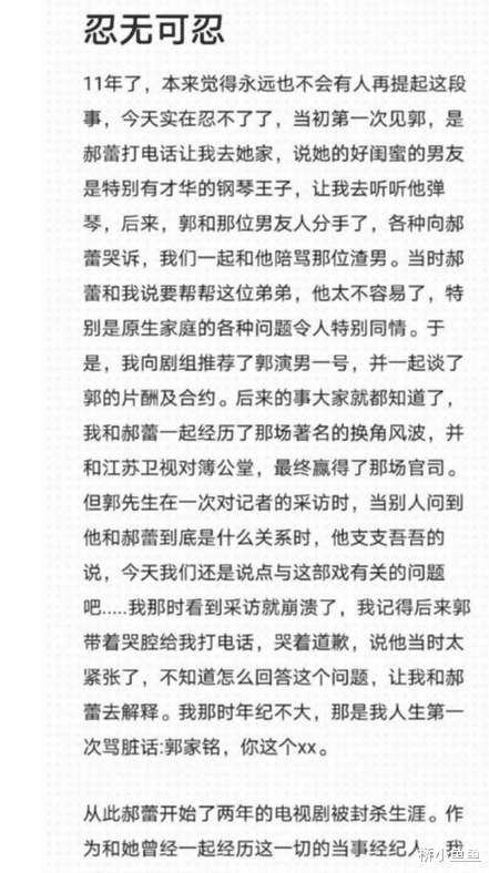 面對這樣的污蔑,郝蕾也是直接反擊,直接開撕劇組,更是將矛頭指向了郭家銘。郝蕾的前經紀人發文表示,郝蕾最初也不愿意接演,是因為郭家銘的前男友是郝蕾以前的閨蜜,才勉強接受。可誰想最后會是這樣的情況,她最終選擇了起訴。