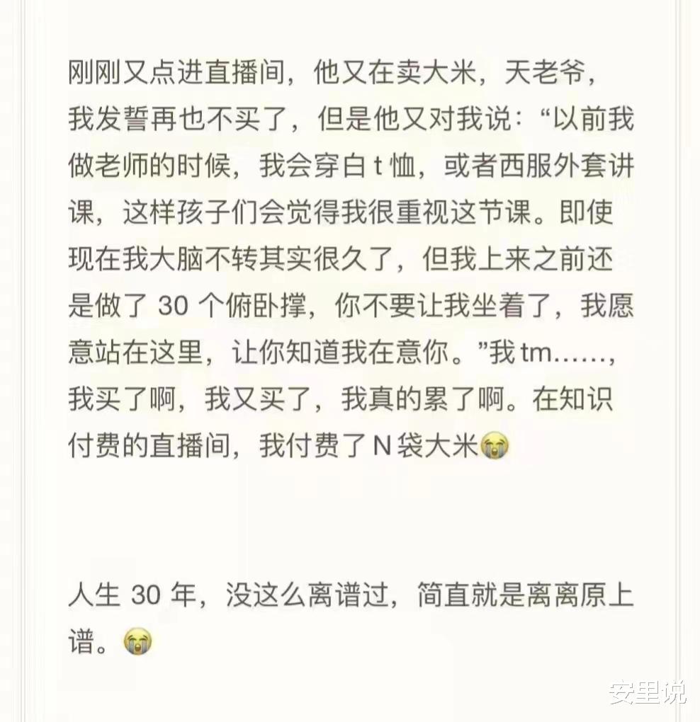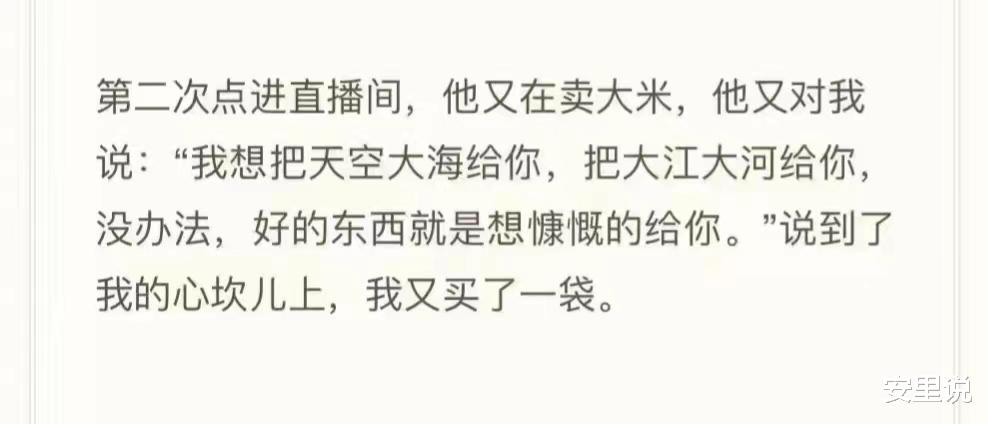 甚至還用上了“離離原上譜”,那究竟是怎么個離譜法?原來是在他的直播間買大米了。