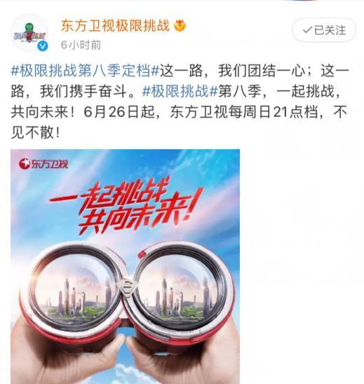 6月13日,《極限挑戰(zhàn)》節(jié)目組官宣定檔時間,第八季將于6月26日起開播。