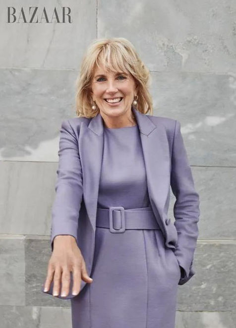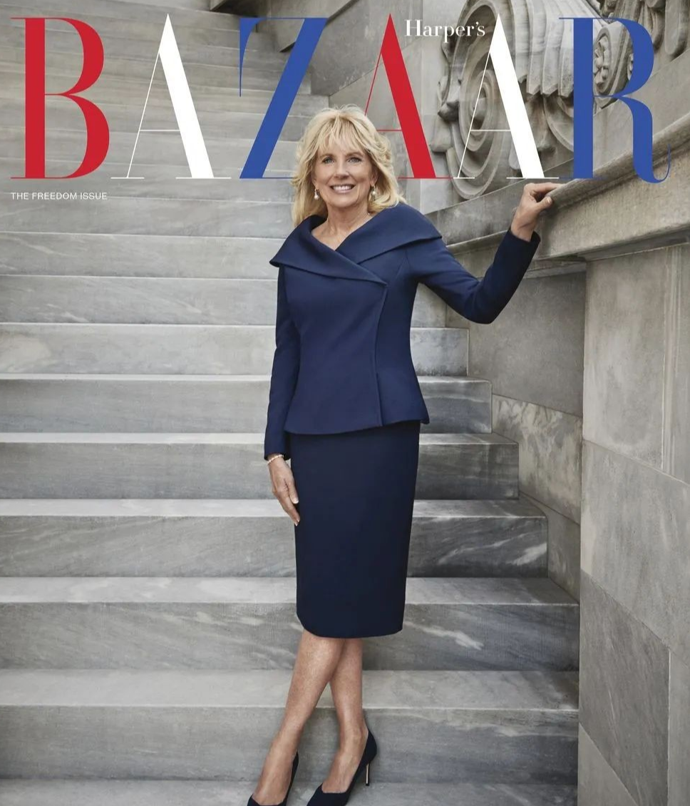 吉老師登上美版 BAZZAR 封面,穿 Raulph Lauren 藍色套裝,封面拍得中規(guī)中矩。