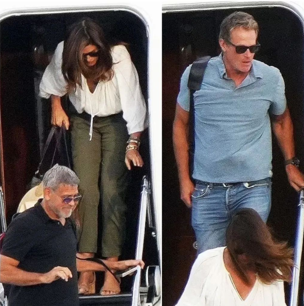 克魯尼夫婦坐著私人飛機到南法去玩耍啦,大律師穿了今年最流行的艷粉色,羨慕她的發(fā)量。