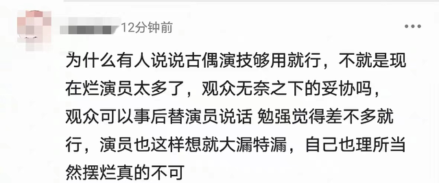 “作為一名演員來說,無論出演任何角色,都應(yīng)該深入了解,基本功不行就去練、演技不會就去學(xué),而不是因為自己演技爛,才去演古裝劇,這種三觀不配當(dāng)演員”