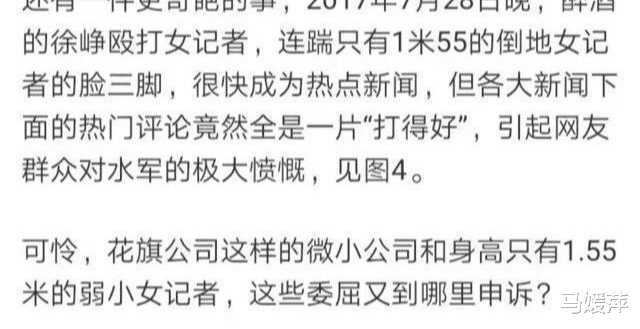 不僅如此,畢志飛還將2017年徐崢毆打女記者的事情揭露,稱醉酒的徐崢對著身高只有一米五五的女記者連踹三腳,并買水軍為自己洗白。