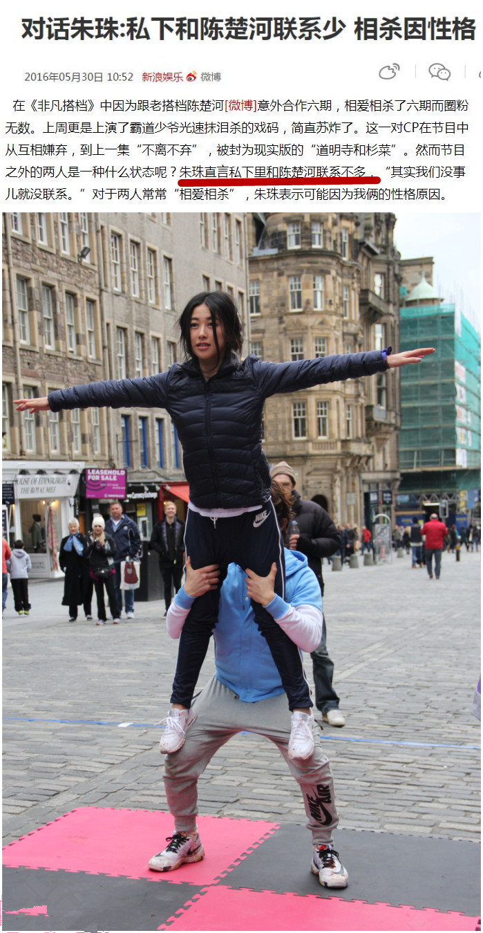 只不過,陳楚河在私下里曾經說過,和朱珠的親密戀情只存在節目中,在生活中他很少聯系對方,朱珠也證實過這一點。