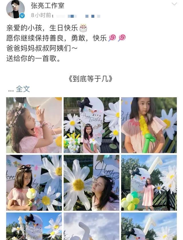 張亮在社交平臺曬照為女兒慶生,他配文稱:親愛的小孩,生日快樂!愿你繼續保持善良,勇敢,快樂~爸爸媽媽叔叔阿姨們,送給你的一首歌,《到底等于幾》”。
