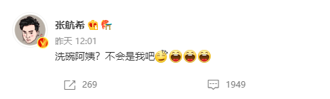 導演張航希就此事做出了回應,發文稱:洗碗阿姨?不會是我吧!并且配上了一些搞笑的表情,用自黑的方式辟謠了該事件,關于此事也就畫上了句號。