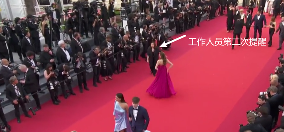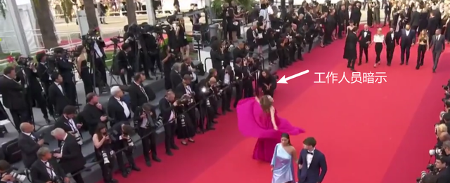 有工作人員示意谷愛凌往前走,不要擋住后面的《掮客》主創團隊,因為一側的攝影師們是無法拍攝到《掮客》主創人員的。不過谷愛凌似乎并沒有留意到,繼續自己的擺拍凹造型。其實對于很多媒體而言,谷愛凌并不是重點,而《掮客》的主創們才是媒體們的主要拍攝對象。所以在谷愛凌擺拍的時候,其實兩邊并沒有什么人在拍攝谷愛凌。