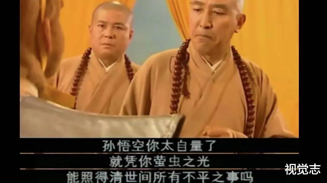 如來雖明知涇河龍王是冤死,但因為關乎「玉皇大帝的名聲」而面露難色,孫悟空求真心切,據理力爭,此時兩個陰陽怪氣的護法質問悟空:“就憑你螢蟲之光,能照得清世間所有不平之事嗎”