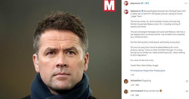 根據(jù)英國媒體太陽報(bào)的獨(dú)家報(bào)道,去年,42歲的邁克爾-歐文因給37歲的前《老大哥》選手瑞貝卡-簡發(fā)短信而陷入丑聞。