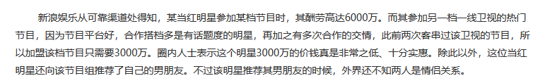 除此之外,還有演員日薪208萬,隨隨便便的稅就上億,一個代言百萬千萬這些事情不斷的被爆出。