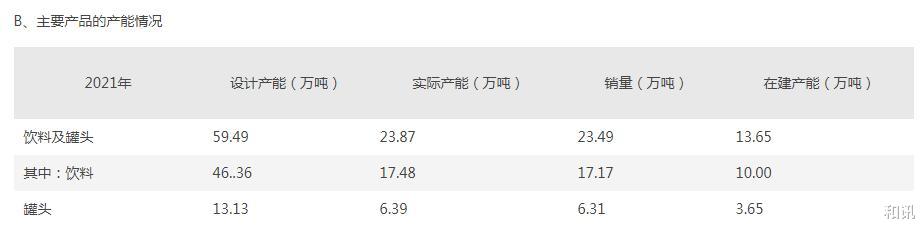 從歡樂家2021年報可以了解到,公司飲料及罐頭的設計產能是59.49萬噸,實際產能為23.87萬噸,產能利用率為40.12%。產能利用率不及50%,歡樂家卻仍然進行擴產,在建產能達到13.65萬噸。