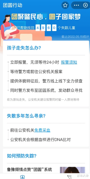 一個好消息傳來,科技行業又發生了一件大事兒,這才是我們想看到的樣子!剛剛看到,公安部和阿里聯合開發的“團圓系統”,一共發布5083條兒童失蹤信息。一共找回兒童4960名,找回率為98.5%。很長一段時間里,我們都有這么個問題,互聯網公司所謂的科技能力在哪兒?現在看到這個團圓系統算是找到了答案!