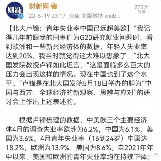 5月18日,北大經(jīng)濟(jì)學(xué)家,國(guó)家發(fā)展研究院盧鋒教授坦言: