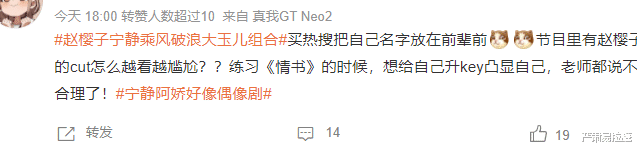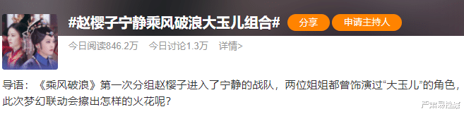 于是倆人分到一組之后,馬上就出現了#趙櫻子寧靜乘風破浪大玉兒組合#這個話題了。