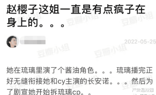 再比如親自下差拆別人的cp。成毅和袁冰妍合作的《琉璃》播完之后,播的是她和成毅合作的《長安諾》。
