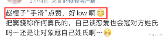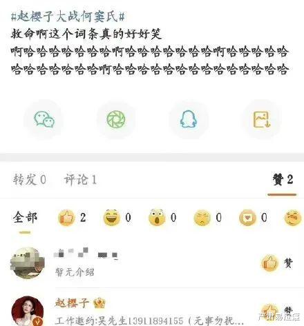 這話題其實蠻小范圍的。直到趙櫻子下場,點贊了一條關于#趙櫻子大戰何竇氏#的微博↓