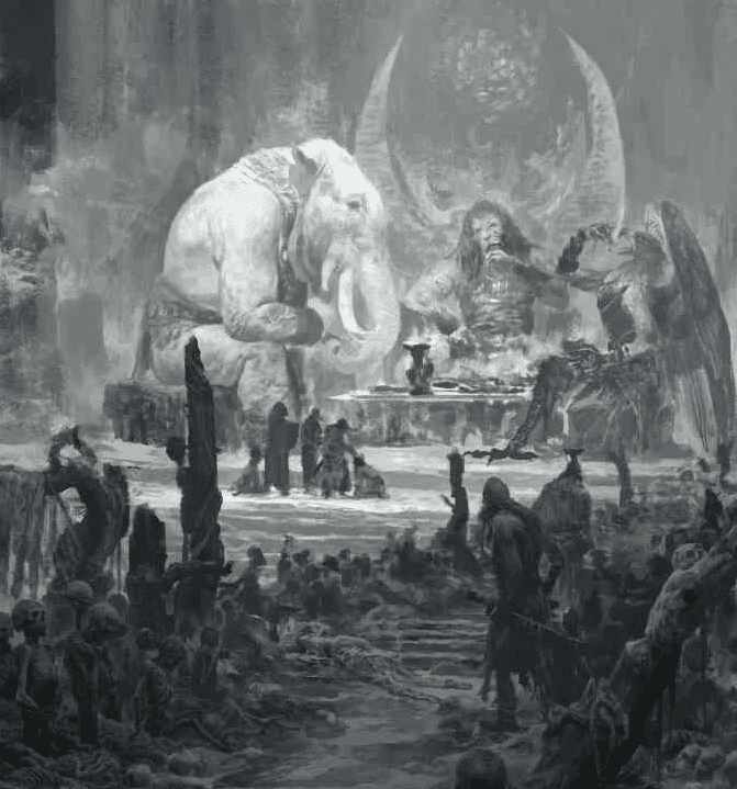 原著中,獅駝城原本是一座繁榮富饒的國家,金翅大鵬雕來到后,將整個國家的人都殺了,并將這里作為老巢,方圓幾百里的城池,密密麻麻全是妖魔“千尺大蟒圍城走、萬丈長蛇占路程、搖旗擂鼓皆妖怪,巡更坐鋪盡山精先年原是天朝國,如今翻作虎狼城”