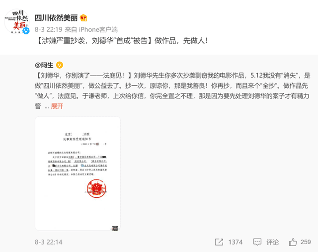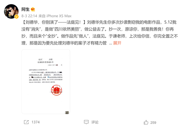 2021年,導演阿生稱,自己用了超過半年的時間來收集證據,已經將資料交給了法院,而法院也已經立案,目前還未判決。