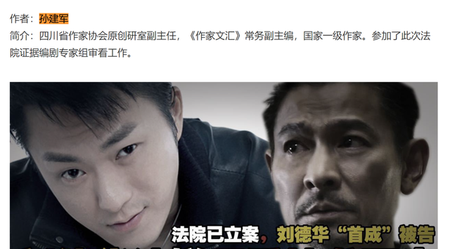 并且聲稱劉德華的《掃毒2》,涉嫌在人物設置,敘事結構,背景故事以及片中的人物關系等重要情節。