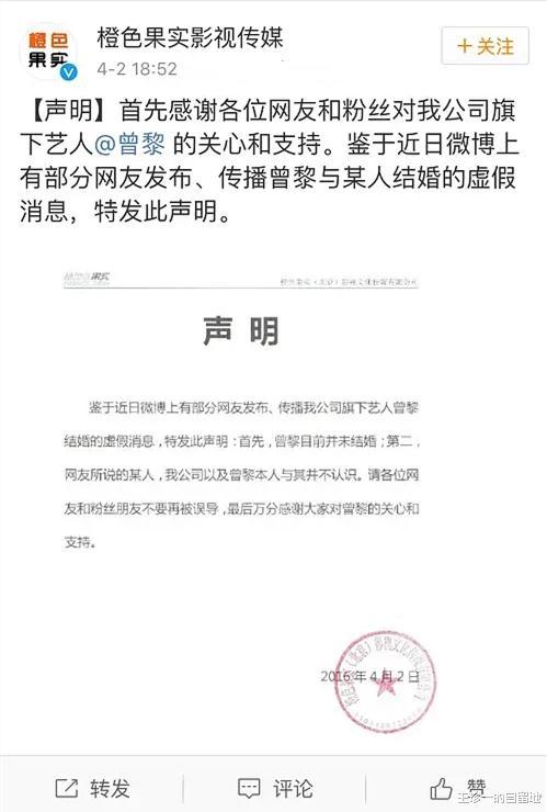 至于在感情上,幾年前網絡上盛傳曾黎和合作過的演員吳軍結婚,但2016年曾黎所在的經紀公司進行了辟謠。