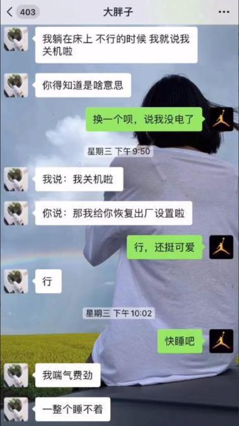 在丈夫曬出的和最后階段妻子聊天截圖中,我們可以看到,在病重的時候,霍九九用“關機”來調侃自己,還讓丈夫說,要幫自己恢復出廠設置,十分的“可愛”,又十分的讓人傷感。