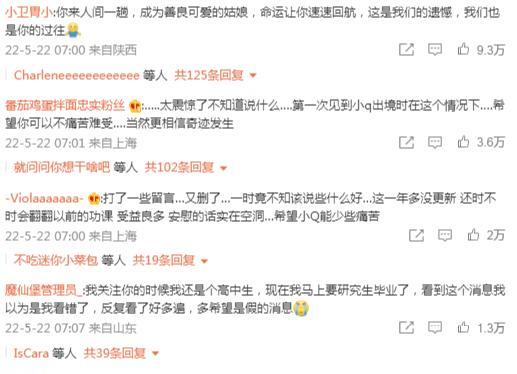 不少網友也是紛紛在留言區為她留言,有惋惜、有打氣、有祈福,有網友遺憾地說“第一次見到小Q出境時竟然在這種情況下,希望奇跡發生”、“我希望永遠不要看到你的樣子,只要你健康地活在這個世界上。”
