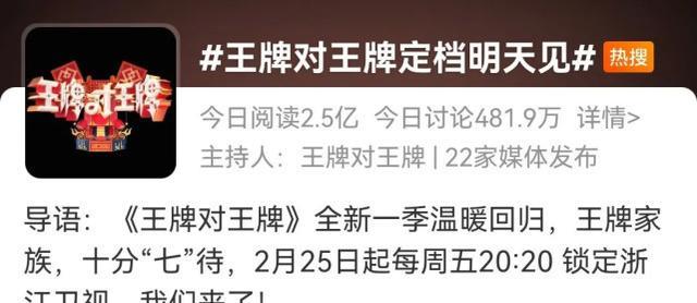 《王牌對王牌》作為浙江衛視的“王牌綜藝”之一,其新一季首播自然也吸引了眾多網友的關注。開播前一天通過與《開端》夢幻聯動的宣傳片,王牌對王牌官宣的消息被推上熱搜,網友們大呼“我的快樂又回來了”。