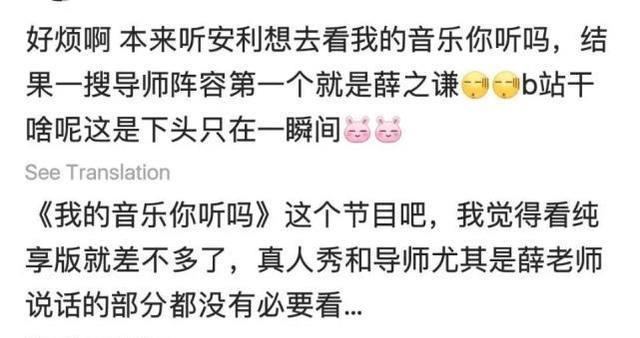 除去選手的因素,導師帶來的爭議也是節目不可避免的硬傷。請來薛之謙確實帶來了巨大流量,但對于他的質疑也影響到了許多觀眾對節目的第一印象,粉絲與路人的罵戰讓節目的重點偏離了音樂本身。實際上這也是許多音綜的通病,選擇流量型藝人作為導師本身就是一把雙刃劍,其中尺度的把握對節目觀感影響很大。