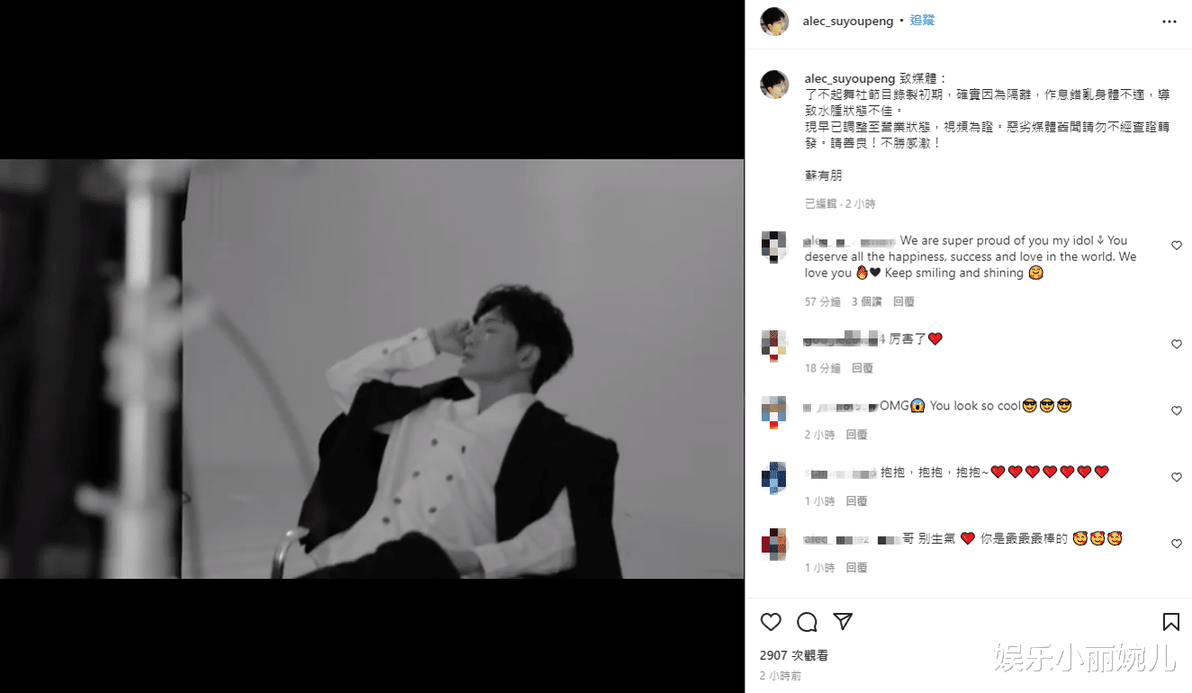近日他參加綜藝節目《了不起舞社》,被網友批評整個人腫一大圈,崩壞照更在網路瘋傳,為了平息外界負面聲浪,他本人在Instagram發出聲明,表示節目錄制初期,確實因為隔離,作息亂身體不適,導致水腫狀態不佳。
