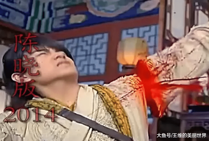 這個版本呢,其實是屬于有點那么點偏離原著,因為楊過都沒躲,直接就看見大小姐砍下來了。之后更多的是慘叫聲和這個血漿,所以說算是化妝了。
