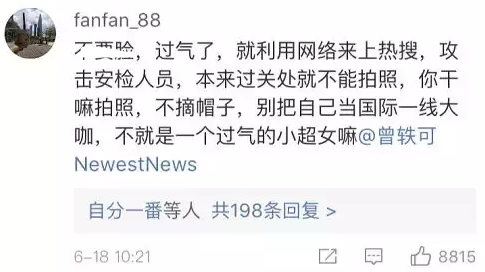 利用自己的影響力,在網(wǎng)上掛一名素人,曾軼可的奇葩操作引發(fā)眾人不滿,紛紛指責(zé)她沒素質(zhì),“過氣了,就利用網(wǎng)絡(luò)來炒作提高熱度”。