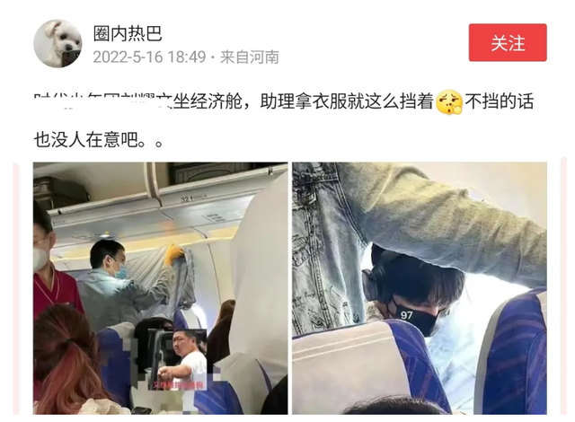 近日,有網(wǎng)友爆料稱,某男團(tuán)成員坐飛機(jī)經(jīng)濟(jì)艙時,竟然讓助理拿著一件衣服擋住自己。